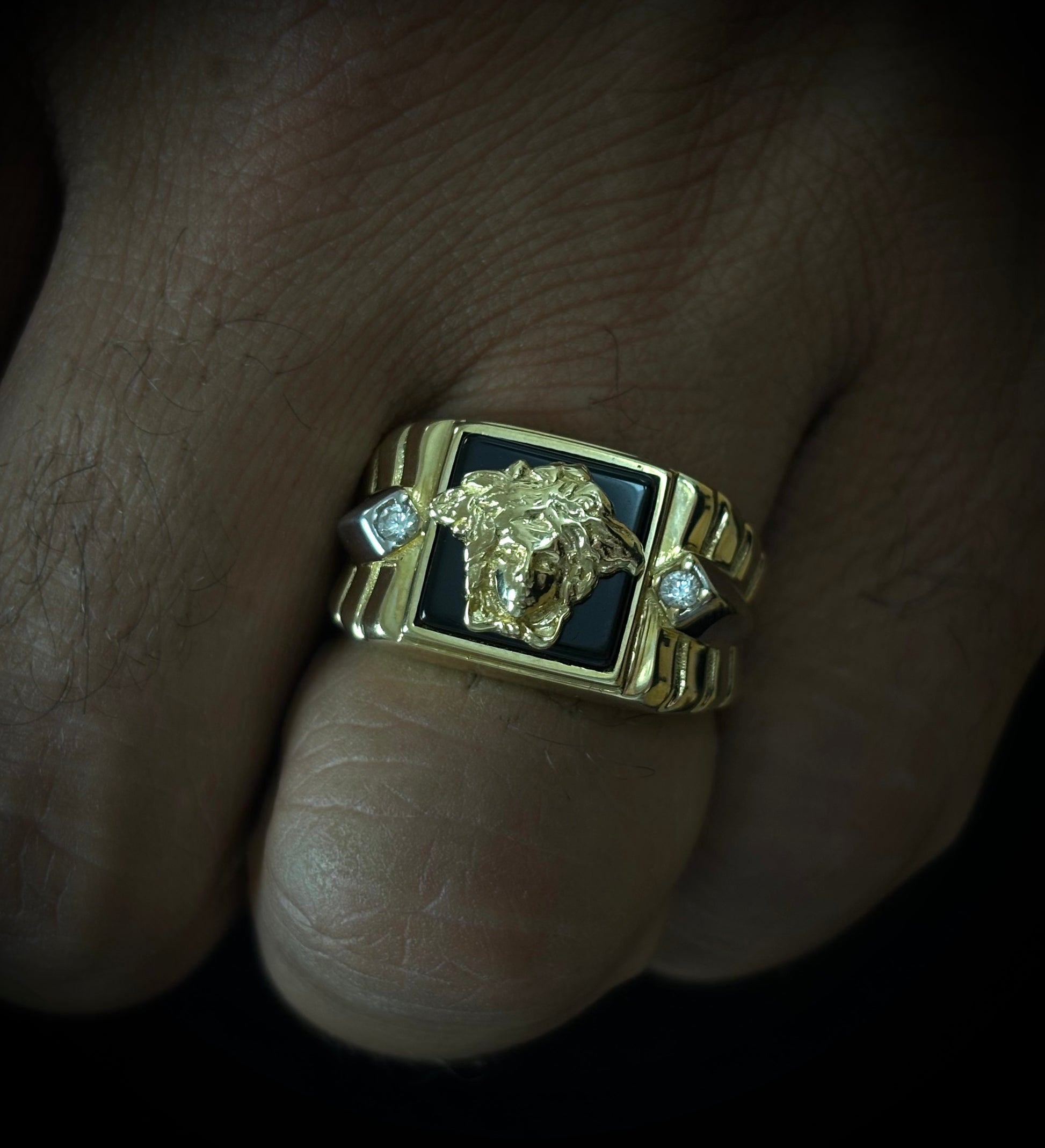 10k solid gold yellow and white gold, natural black onyx gemstone
